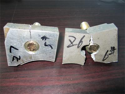 (2) 在預(yù)裝鋼絲螺套的內(nèi)螺紋中安裝螺栓并在拉力試驗(yàn)機(jī)上進(jìn)行抗拉強(qiáng)度試驗(yàn),在加載到2200N左右時螺栓發(fā)生屈服變形,并發(fā)生預(yù)縮現(xiàn)象,螺栓產(chǎn)生輕度變形。試驗(yàn)結(jié)果和詳細(xì)數(shù)據(jù)如下表。可以看出,標(biāo)準(zhǔn)內(nèi)螺紋的螺紋連接**承受拉力為1394N,而預(yù)裝鋼絲螺套后螺紋連接*小承受拉力為2100N,說明預(yù)裝鋼絲螺套后確實(shí)大大提高了螺紋連接的抗拉強(qiáng)度。